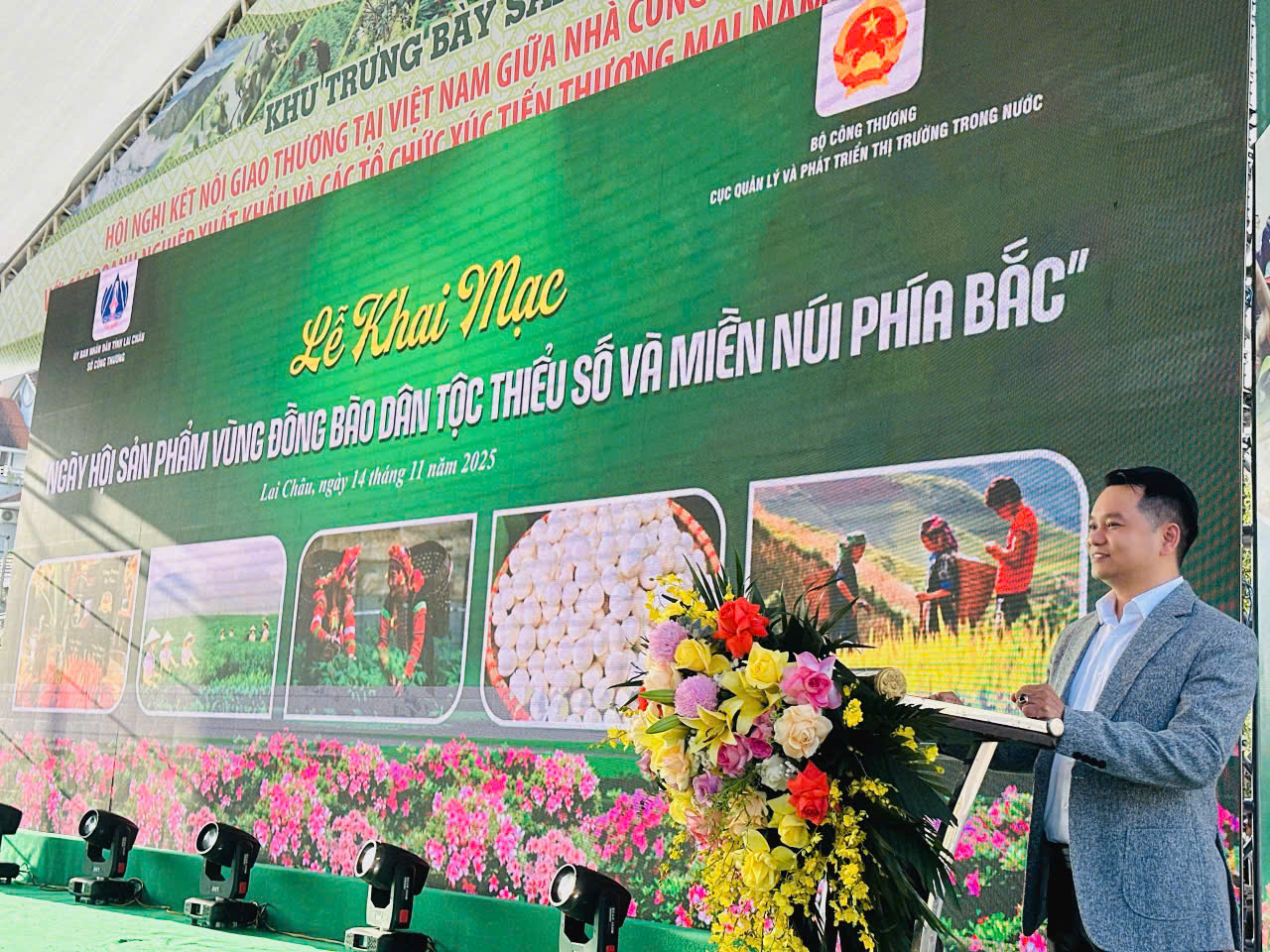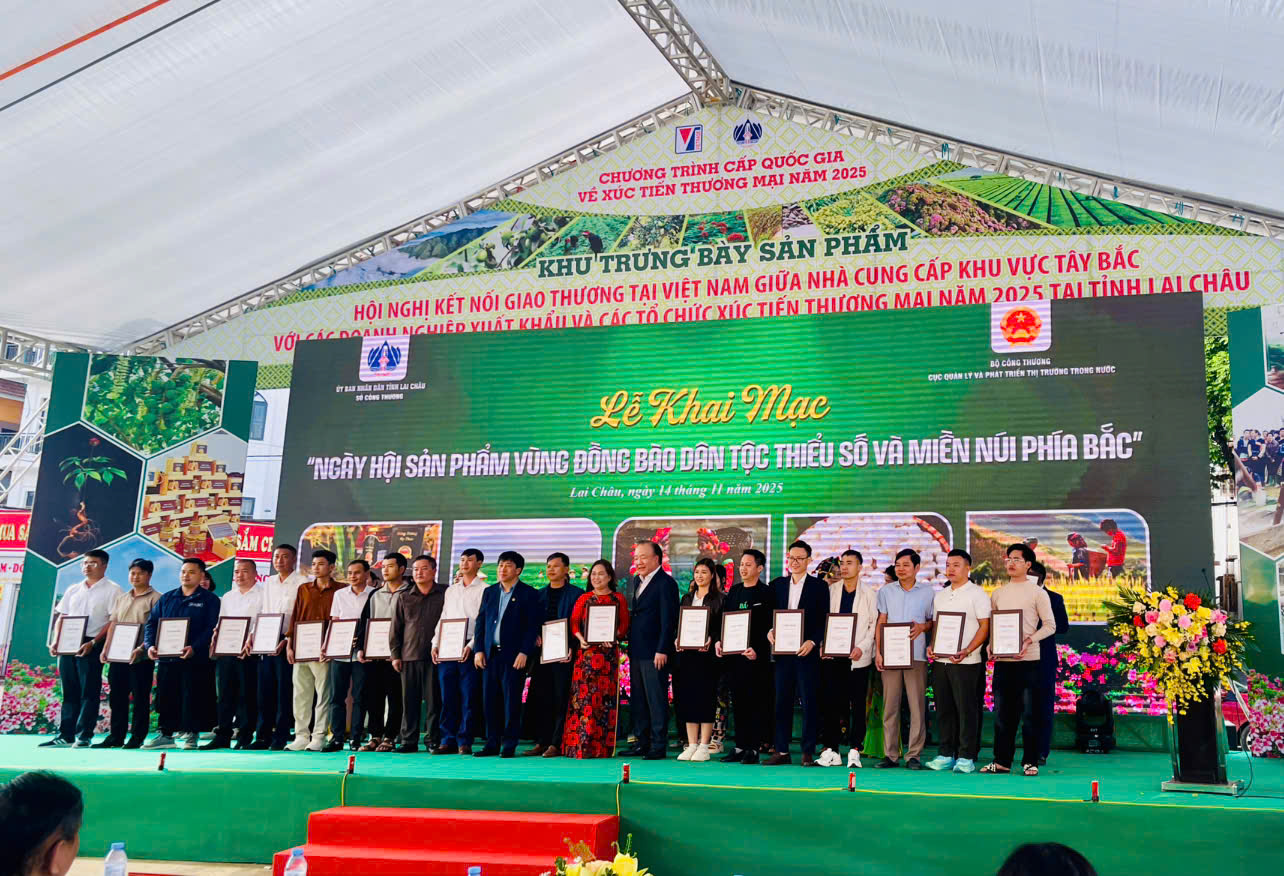 Ngay từ đầu giờ sáng ngày 14/11, khu vực sân khấu chính và các gian trưng bày đã thu hút đông đảo doanh nghiệp và khách tham quan. Tại đây, các sản phẩm đặc trưng của Tây Bắc như Sâm Lai Châu, chè Shan tuyết, thảo dược, mật ong rừng, nông sản bản địa, thực phẩm sạch và hàng thủ công truyền thống được giới thiệu trong không gian mang đậm màu sắc văn hóa dân tộc.
