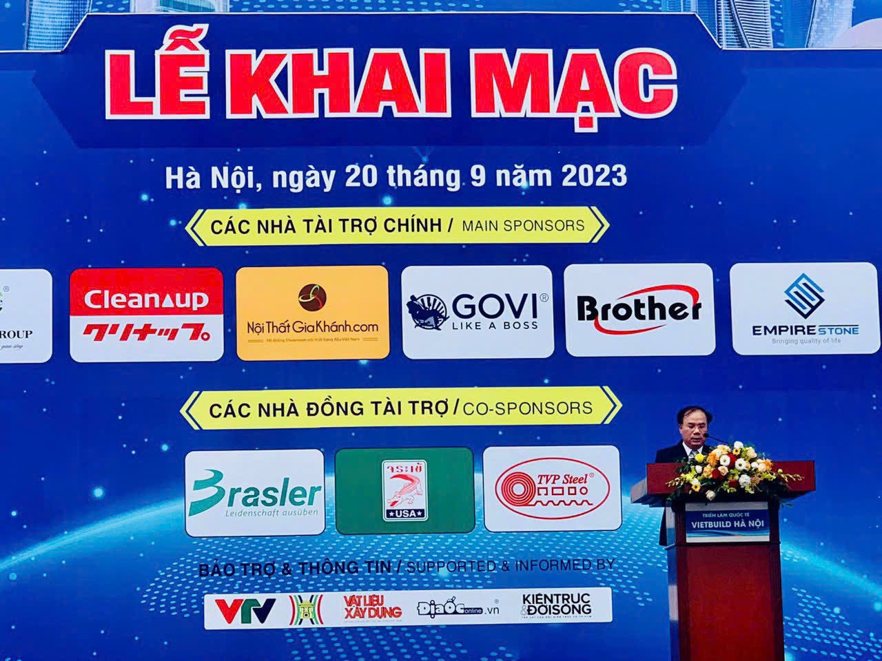 Thứ trưởng Bộ Xây dựng Nguyễn Văn Sinh phát biểu khai mạc Triển lãm Quốc tế Vietbuild 2023.