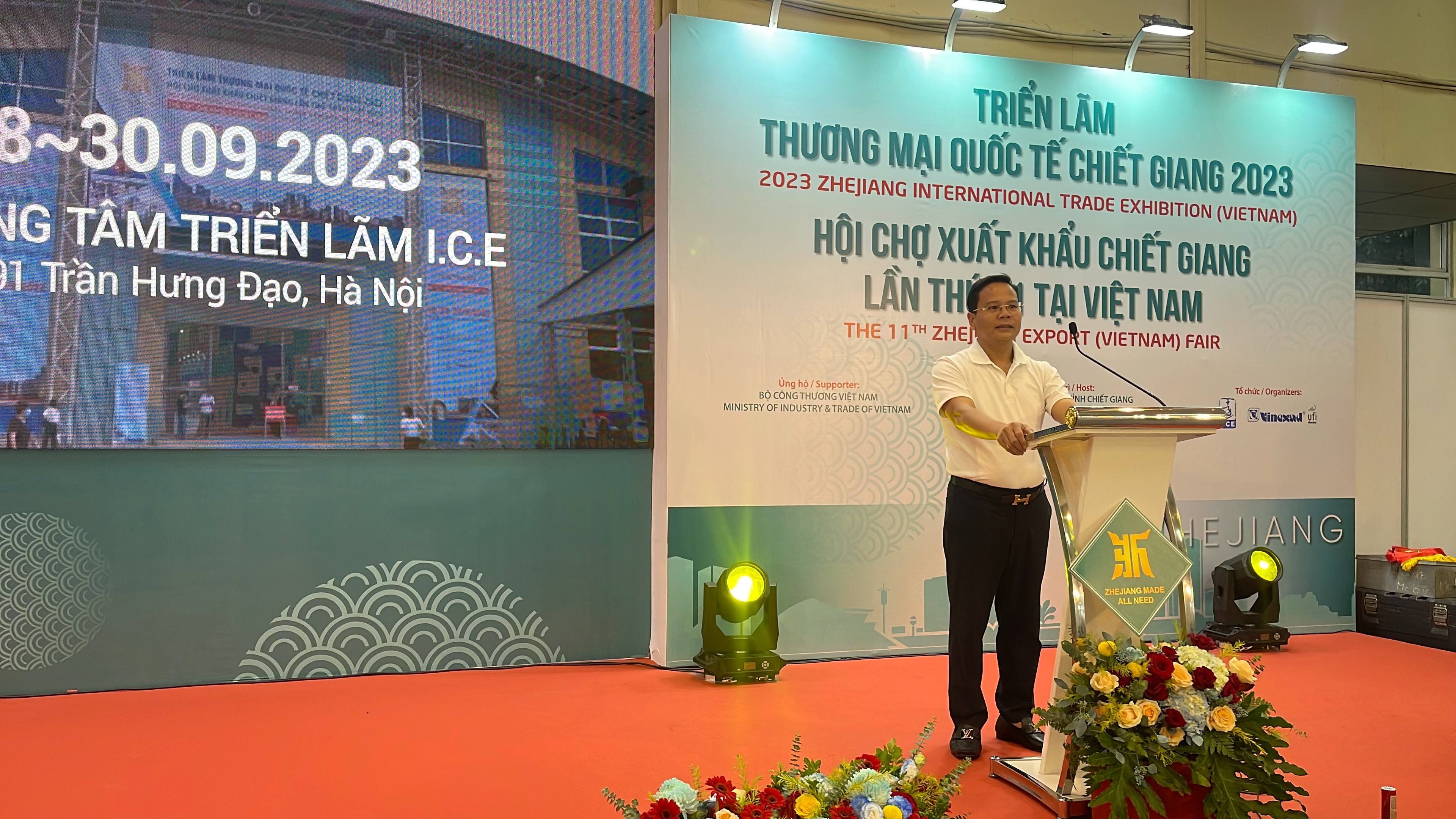 Ông Tô Ngọc Sơn, Phó Vụ trưởng Vụ Thị trường châu Á-châu Phi (Bộ Công Thương), nhấn mạnh Triển lãm Thương mại Quốc tế Chiết Giang 2023 và Hội chợ Xuất khẩu Chiết Giang lần thứ 11 tại Việt Nam là hoạt động đánh dấu sự khôi phục hoàn toàn của các hoạt động giao lưu kinh tế, thương mại song phương sau 3 năm gián đoạn bởi dịch COVID-19.
